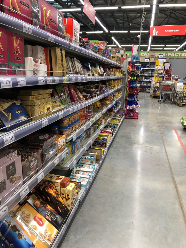 Есть всё необходимое. Оценку снизила за то, что часто проходы бывают заставлены поддонами с товаром или ящиками/коробками, крайне неудобно передвигаться по магазину из-за этого. На кассах постоянно очереди. По качеству продуктов претензий нет, но хотелось бы расширить ассортимент