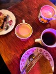 Понравилось место. Обои как у бабушки в деревне в прошлом веке) Меню досконально не изучал. Кофе и десерты годные. Цены для этого района Москвы обычные, на мой взгляд. Много молодёжи, причём вполне воспитанной, но не гаджетных ботаников, что нам, старперам, особенно приятно)) Здесь же продаются футболки, сумки с веселыми принтами и другие сувениры. Главное - атмосфера. Уютно. Ставлю 5 баллов не задумываясь.