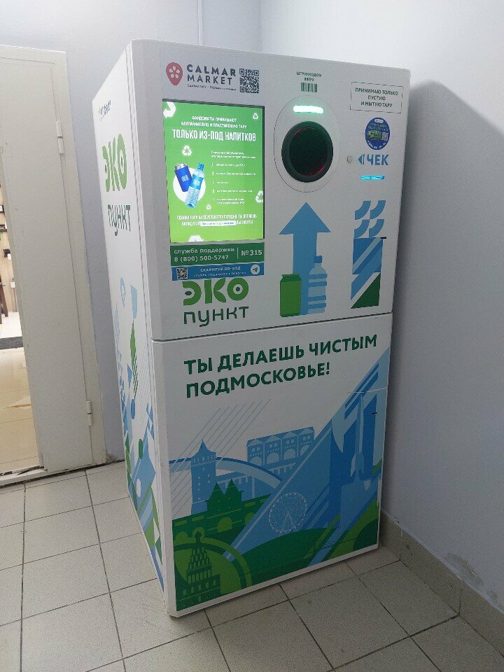Очень удобный пункт приёма, можно сдать пластиковые бутылки и алюминиевые банки. Приезжала два раза, работал. Находится на -1 этаже. Баллы можно использовать во ВкусВилл или на литрес.