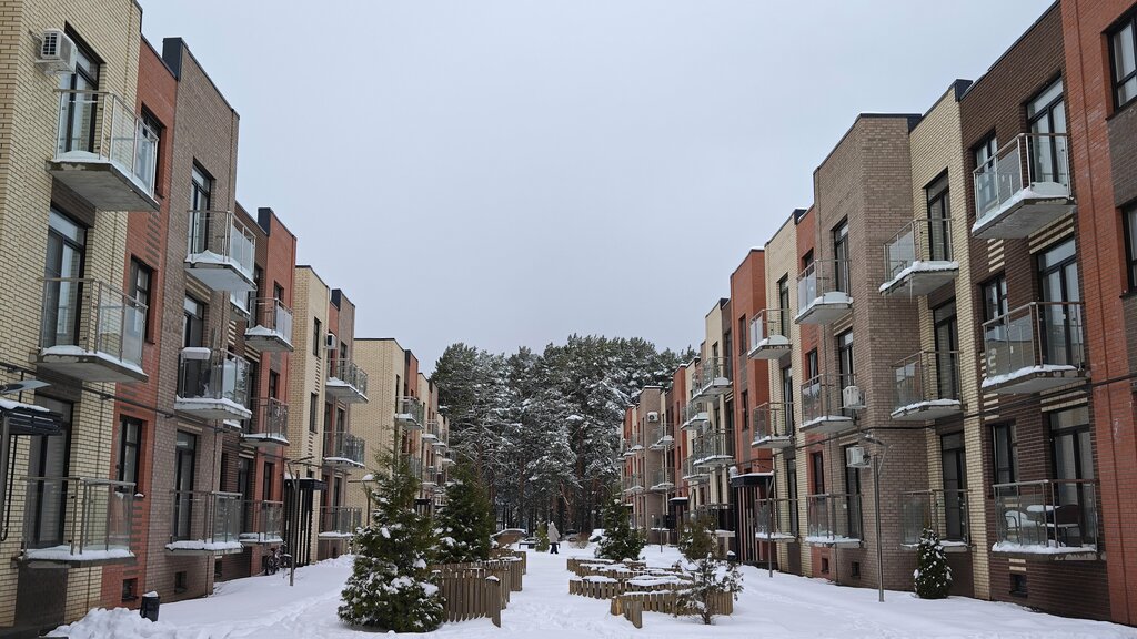 Небольшой ЖК с хорошей огороженной территорией, сосновым парком и детскими площадками, торговые центры, фитнес центры в 3 минутах езды. Окружающая территория еще не благоустроенна, идет активная стройка, поэтому дорога ведущая к ЖК порядком разбита. Пешие дорожки до торговых центров только грунтовые и непригодны для использования в непогоду. Надеюсь это болезни роста и скоро пройдут. В целом очень клевое место. По квартиркам комментировать не буду, был только в одной двушке, поэтому выводы делать,сложно.