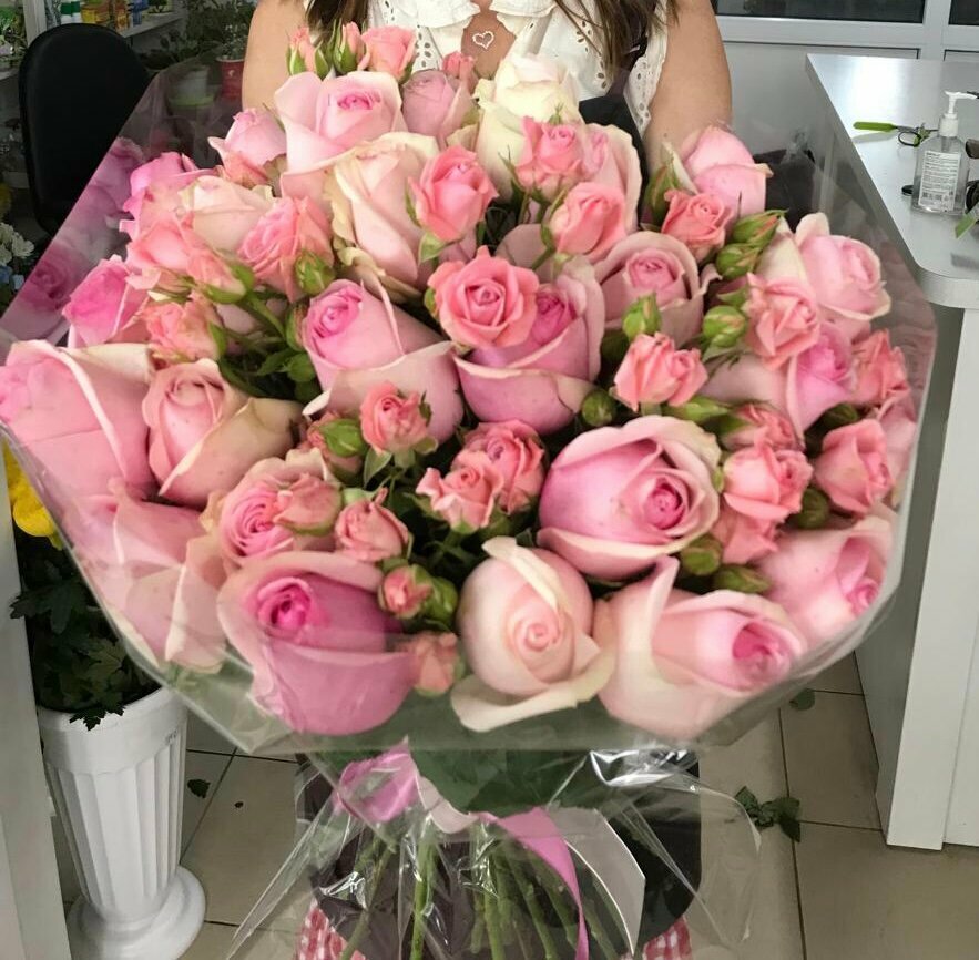 Есть выбор, можно сделать букет на заказ, букет с доставкой, доброжелательный персонал.