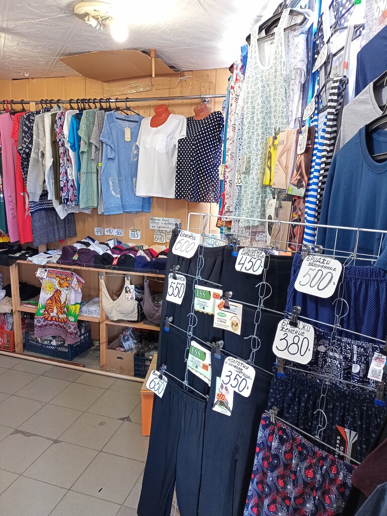 Хороший выбор сезонной одежды, домашней одежды, мужского и женского нижнего белья . Продавец Елена хорошо знает товар, подскажет и покажет ассортимент нужных вещей. Часто сюда прихожу. Рекомендую.