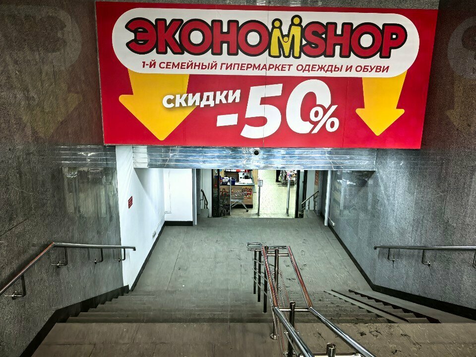 Отличный магазин. Даже на меня есть большие размеры, что очень редко в таких магазинах. Персонал вежливый и над "душой" не стоит и не навязывает товары. Можно купить от шорт до куртки, обувь от летней до зимней. Есть оплата картой и наличными. Вход в подвал, но не тот, что по эскалатору, а чуть левее по ступенькам вниз.