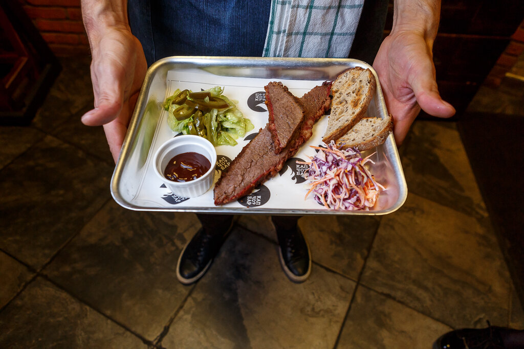 Еда очень вкусная. Заказывал бургер с рваным мясом. Зашло... По пиву выбора маловато, но качество хорошее. На закуску очень щедро накладывают деревенскую картошку и рваное мясо. По атмосфере, запах дыма и копчёного мяса создаёт атмосферу. По интерьеру ничего не впечатлило.