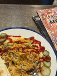 Средний по вкусу кофе, ранее были неплохие завтраки, особенно яичница, но было раньше, а сейчас мелко нарезанная четверть картошки, одна сосиска и чуть фасоли. Как есть картошку, когда она вся прилипла к сковородке - не совсем понятно)