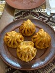 Безумно вкусные хинкали! Поели с большим удовольствием. Очень советую компот! Привлек своим видом десерт в виде хинкали, снаружи белый шоколад, внутри пирожное картошка - супер задумка!