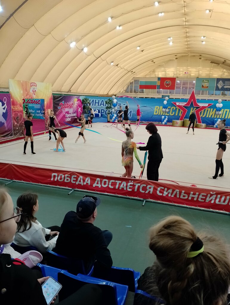 хороший спорт комплекс! там занимаюсь, но зимой холодно, но кондиционеры поставили стало теплее. в потеряшках можно найти всё что потерял. соревнований много, класс😽😽😽 люблю эланс