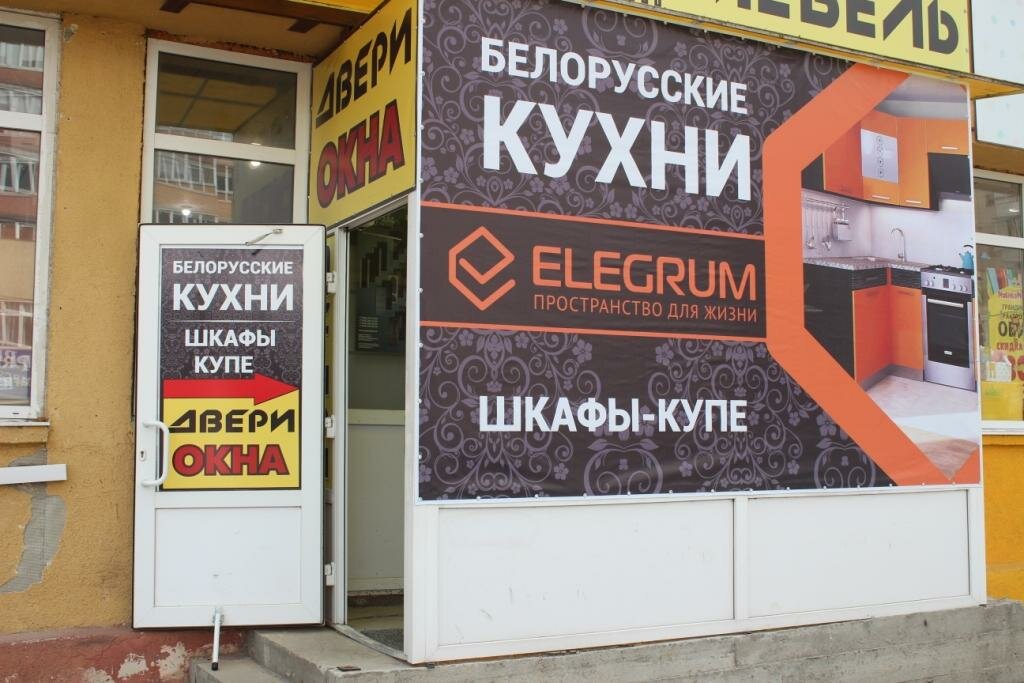 Это магазин по продаже белоруских кухонных гарнитуров, шкафов купе, дверей межкомнатных и входных. В торговом зале чисто, большой выставочный фонд дверей, так же представлены выстовочные образцы фасадов.