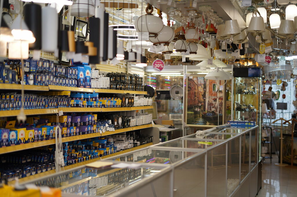 Магазин хоть вглядит не особо богато и современно, но там большой выбор и приемлимые цены. Женщина-продавец очень отзывчива, помогает с выбором и консультирует. На фото люстра из магазина.