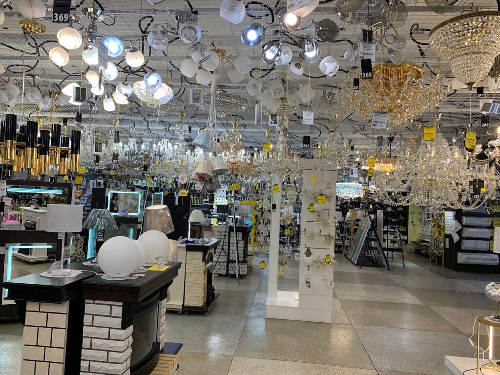 Магазин, можно сказать, специализированный. Люстры, бра, настольные лампы, светильники, лампочки, светодиодные системы, розетки, выключатели потолки, камины, даже гардины со всякими финтифлюшками есть. Такое вот направление. Освещение и немного уюта к нему. Если вам надо найти что-нибудь нестандартное, не как у всех, то скорее всего найдёте тут. Есть система скидок. Из минусов - разве что некоторая удаленность от остановок общественного транспорта, но зато большая площадка перед магазином, есть где поставить машину. Плюс тут по соседству куча магазинчиков по метизам, мебельной фурнитуре, в общем ничетак, всё в одном месте.