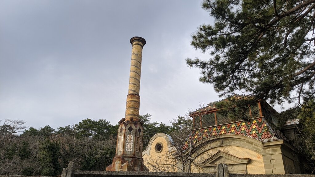 Доступа к антикварным технологиям этой электростанции нет , так что приходится довольствоваться видом экзотического дизайна .столь не свойственного столь прозаическим техобъёктам. Из за забора видно нечто типа пряничного домика и дымовой трубы похожей на рождественский леденец, свиду и не догадаешься что это объект инфраструктуры.