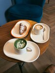 Вкусное кофе, мягкое ☕️ Так же брали бэйглы с индейкой и окороком вкусно, корочка хрустящая, а внутри сочно🥰 Приветливый персонал, всё подсказали и порекомендовали, тихо, спокойно хотя место находится в центре Москвы, тут можно отдохнуть от суеты , определённо приду ещё 😌 Хотелось бы ещё попробовать десерты 🍨