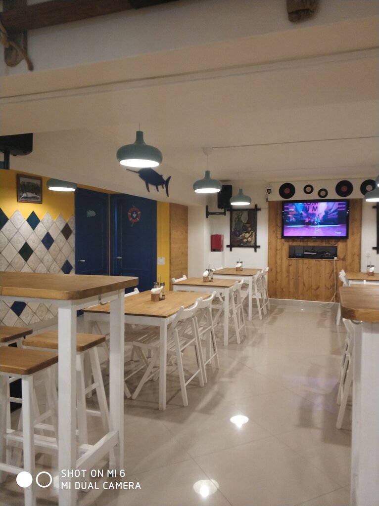 Приятная атмосфера. Большой беззвучный экран телевизора. Выбор грузинского и краснодарского вина, игристых итальянских и французских с замахом на ресторан. Жаль, что из меню пропали черноморские морепродукты. Караоке работает только летом. Детский уголок сохранили, спасибо.
