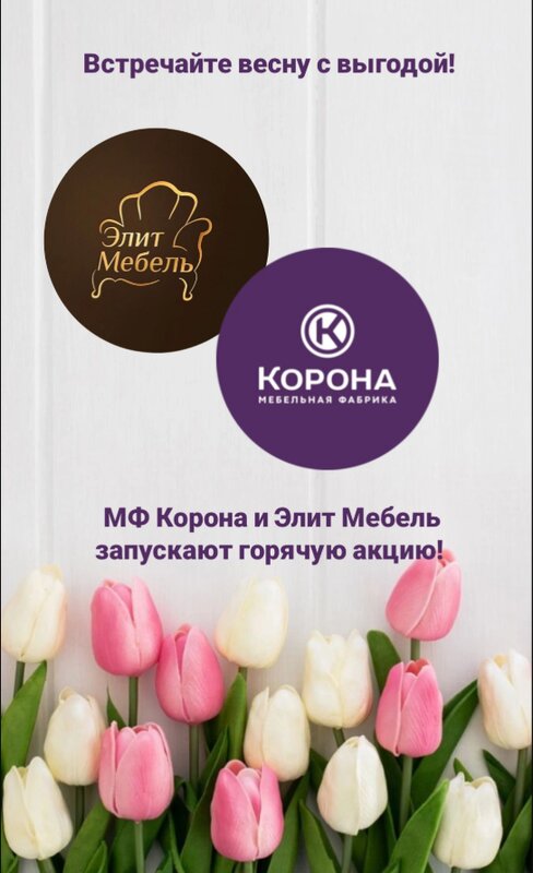 🚀 Встречайте весну выгодно с «Элит Мебель» и «МФ Корона»! 🚀 🌸 Стартовала наша новая акция: «Выгода в каждой покупке»! 🌸 С 15 марта по...