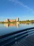 Замечательное место, имеются лежаки на пляже, очень чистый песок, сама территория также содержится в чистоте, для детей имеется множество игровых площадок, вода чистая, вид шикарный, особенно проходя по деревянному мостику, плавают утки. На территории есть, где перекусить, в прокат можно взять катамаран любого вида и цвета. Советую посетить 👍🏻