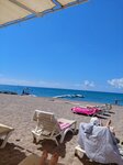We had a rest at the end of May, two adults and a child of 6 years old, flying from Moscow.They paid 140k for 10 nights.We got from the airport to the hotel with a stop in ~ 2 hours. We were at the hotel at 10 p.m., a nice girl met us at the reception, we were checked in and fed.A huge plus is the location of the hotel, a couple of minutes to the sea, the beach is sandy and small pebbles. There were enough sun beds, and we took hotel towels to the beach. There are canopies and gazebos on the beach, and if you arrive early, you can easily find a place. The territory is well maintained, although small, the main thing is that it is there and it is pleasant to walk along it.There is a small playground, two swimming pools, one with water slides. The hotel consists of 3 buildings, which are not interconnected.We had the 3rd building on the 3rd floor, there was no elevator, our suitcases were carried in our hands, our balcony overlooked the balconies of the neighbors) it was quiet at night- this is a plus There is no kettle in the room, tea or coffee is also missing, although the hotel description indicates their availability. The room is small, I did not like the closet, it is in no way designed for 3 people, there is only a wardrobe in the closet without any shelves, it is very difficult to place clothes. In addition to the closet, there is a small bedside table, but there is clearly another one in the room. The refrigerator, air conditioner and plumbing are all working. It is very difficult to set the water to a comfortable temperature in order to wash. You turn it on warm, it's cold, turn it on a little warmer, it's boiling water, every day there were dances with a tambourine to take a shower, and if there's no sun, then there's no hot water either.The cleaning was done, but mediocre, tips were left. Sometimes they forgot to put toilet paper or a towel for their feet, I took it myself from the cleaning cart, which they leave on the floor. Nutrition 3. I'm not picky, but there really is a shortage of meat. There's always chicken breast stew for dinner (it was a little raw a couple of times)there were days when she was the only one+ grilled chicken, I don't know what part they take, but each piece has bones, and it's delicious, but there's very little meat in it, clean bones to gnaw) periodically grilled fish (bony) and stewed fish, it's more or less.There is only one type of soup and it is island-like, which is critical for me, because the child always eats soup for lunch.At the end of our vacation, the food became more varied. Vegetables and snacks are plentiful, sweet as everywhere, fruits are only apples, pears and oranges, and a watermelon appeared a couple of days before departure. Cooks do not always keep up with the influx of people, food trays can stand empty until you ask for food, sometimes the food ran out an hour after the start of the meal and pepper was put in the tray to fill the empty space.There are constant queues at the grill near the pool, and a couple of times in the morning, after standing in line for pancakes or donuts, the boy would throw up his hands and say, sorry, they've run out of dough-it's a shame. He also roasts fried eggs there, which increases the waiting time for people in the queue who don't need fried eggs, they don't fry them in the kitchen, apparently due to lack of ventilation, or I don't know why) In general, the restaurant staff tries to respond to requests, but sometimes they do not have enough speed. There is a bazaar within a 5-minute walk from the hotel, if you cross the highway, there is a pharmacy and bus stops, you can get to Manavgat or Alanya. By animation:every evening there is a nursery, after which there is something for adults.It was the same type of nursery, but the child liked it. There is a children's room.During the day, darts, bocce, volleyball, and the girls did well, but during the rainy season, which we unfortunately managed to catch, the hotel was boring- there was nothing to go and do, many people were sitting in their rooms. Spa- I still don't understand their prices.She is not in the hotel, but on its territory on the way to the beach, on the second day of rest she wanted to undergo a massage course of 5 sessions, without any peels and other things, a pure massage for 40 minutes, as a result, I was counted for $175 according to the "old price tag" for 5 sessions. 50$ less)I had to give up, because a few months ago, in another hotel, I paid $100 for the same 5 sessions with a hammam, pool and face masks.The hotel is suitable for an unassuming tourist and for an adequate appropriate price tag, of course it does not reach the solid 4*☺ To summarize:given the convenient location of the hotel, friendly staff, a good beach and an adequate price, we would return here again, now knowing all the pros and cons. Take a great mood with you and you will definitely be able to relax.