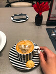 I love the Armani brand, so I couldn't pass by this cafe in the Mall of the Emirates. Everything is aesthetically pleasing, beautiful, in the style of the brand 💜 The menu is presented in the form of a QR code on the table. I chose a delicious and fresh dessert, with cappuccino - the Armani sign was depicted on top