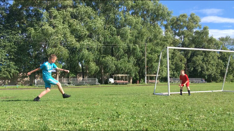 Условия на стадионе действительно хорошие. Прекрасное футбольное поле и ворота, коробка для детей и площадка для занятий спортом. Также на нем проводятся матчи и есть небольшие "трибуны"