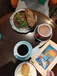 Утром в будни в кафе наблюдается низкая загруженность: зал почти пуст. При этом, обслуживание медленное и не всегда внимательное. Создаётся впечатление, что за столиками не закреплены официанты, и они подходят к посетителям случайно. Блюда вызывали неоднозначные впечатления. Стоит отметить шакшуку — это блюдо не соответствовало ожиданиям. По идее, яйца не могут подгореть, независимо от рецепта, соуса не было. Скорее было похоже на жареные яйца с томатами и фаршем из говядины. Кружки, из которых подают кофе, не самые привлекательные. Однако сам кофе вкусный. Надо отметить, что после замечания убрали блюдо из чека. Парковку обнуляют.