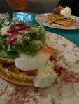Зашли с подружкой посидеть 31 декабря после прогулки . Кафе уютное, официантка быстро подошла , предложила меню и была очень гостеприимна. Я выбрала бенедикт с лососем и капучинно. Оцениваю на 4 , капучинно был не такой горячий , как хотелось бы. Вафли вкусные , но яйца пашот холодные и мне не хватило зелени , например , та же руккола украсила бы это блюдо.