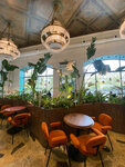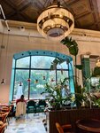 Однозначно интерьер достоин отдельной высокой оценки: 10-метровые потолки, мозаика, зеркало невероятных размеров, много зелени — шикарно! Добавлю каплю дегтя — завтрак из шакшуки и какао не зашёл: шакшука должна быть обжигающе горячей и долго не остывающей, поэтому ее обычно подают в чугунной сковороде. Здесь — другая подача, быстро остыла, да и специй не хватило. Я — большой ценитель этого блюда, поэтому везде и всегда заказываю, есть с чем сравнивать. Это точно не мой выбор. С напитками тоже казус — какао принесли , во-первых, раньше основного блюда, хотя об этом не спрашивали и у меня не уточняли. Во-вторых, какао тоже был холодный. Так что есть над чем поработать!
