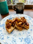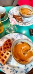 Вафли и тыквенный суп очень понравились. Чай не вкусный. Огромный минус заведения это близко стоящие столики.
