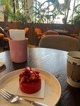 Удивлена оценке 5, к моему сожалению, это твердая тройка. Интерьер красивый, лаконичный, кофе хороший, плюсы закончились. Счет был на 1,5 тысячи рублей, зашли на кофе и десерты с мужем. Пришли за час до закрытия. Никто на входе не встретил и не проводил к столику, пришлось спрашивать самим, возможно ли еще занять столик и сделать заказ или кухня уже закрывается, ознакомившись с меню и сделав выбор, ожидали официантов, пока нас хоть кто-нибудь заменит и примет заказ порядка 5-7 минут. Десерт Павлова оказался очень сухим (тяжело было отрезать кусок) и невзрачным, по вкусу был невозможно приторным и лип к зубам, отказалась от него, заказала Тотальную клубнику и опять не мое. Невзрачный по вкусу и виду мусовый десерт с замороженной клубникой внутри, кисло-сладкий, сверху украшен несладкой клубникой (хотя и не сезон), но слишком холодный (либо мои зубы еще не отошли от безумной сладости Павловой). Мужу Профитроли понравились, хотя мне показалось, что тесто на профитроли не первой свежести, либо отпекли их еще вчера, а сегодня реализовали. На 1,5 тысячи рублей это очень слабо по кухне (в нашем случае кондитерскому цеху) и сервису. Однако отмечу, что в счет Павлову не включили, что показывает лояльность и внимание ресторана к жалобам гостей. Ах, да, ребята, вид комплиментов удручает, помятые мандарины без веточек в стакане?окей, может быть, это вкусовщина, но в нас точно она не попала) К сожалению, не думаю, что в ближайшее время появится желание дать заведению второй шанс.