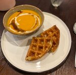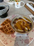 Очень очень вкусно! Тыквенный суп с сырными вафлями, голубцы под сметанным соусом, фирменные чаи, сладкие вафли, а также куриный суп это просто что-то нереальное! Очень рекомендую это место! Вкусно всё, от сытных основных блюд, до десертов и напитков 🔥