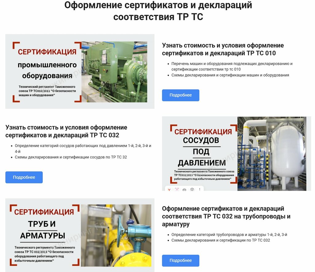 Оформление сертификатов и деклараций соответствия ТР ТС на промышленное оборудование. Удобный онлайн калькулятор определения стоимости сертификата