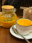 Зашли чтобы переждать время и заказали чай/кофе и десерты . Уютно даже вечером в субботу народу нет. Пришли двоем с мужем , нас решили проводить за столИК где 6 стульев ) очень удивилась так как все столики для пары были свободны) странный выбор ) По итогу столик выбрала сама) принесли вкусный малиновый мусс и улитку с изюмом. Вкусный облепиховый чай в чайничке)