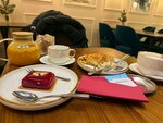 Уютное небольшое кафе, выбор пал на него из-за хорошей карты завтраков. Завтраки действительно хорошие, вкусные, большие, фото прилагаю. По ценам средне/чуть выше среднего (на мой взгляд). Красивая подача, но на вкус обычные блюда, без авторских изысков. Бриошь вкусная! В следующий раз, думаю, стоит попробовать именно выпечку. Кофе раф оказался очень сладким, не рекомендую тем кто не любит кофе с сахаром. Очень жаль что нет веранды, внутри душновато.