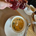Хотели поесть лукового супа с семьей, очень его любим, но не сказать, что не вкусно просто чего то не хватило. Может быть продукты не те. В общем французский ресторан оказался не совсем французским к сожалению. Десерт панакота не понравился совсем карамелизинованной коркой не пахло, а просто посыпано сахаром и обожжено сахар не растопился местами совсем. Обслуживание одно из лучших очень приятные и быстрые официанты.
