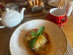 Ну, прямо не знаю что сказать. Приехала специально из центра насладиться эклерами. Пошла в бистро при ресторане. Прямо в шоке от этого места: времени час, персонала полно, но никто не обращает на посетителей внимания от слова совсем, и заняты своими очень важными делами. Кое -как нашла человека, который мог бы мной заинтересоваться, и наконец дать мне мой эклер с чашкой чая. И… огорчилась. Я ехала за кондитерским шедевром ( по отзывам в интернете), но это совсем не так. Ребята, это точно не кондитерский шедевр. Я бы отнесла их к категории «очень приличные», но ехать специально, имея это отдельным пунктом туристической программы, точно не стоит. Лучше полюбуйтесь городом!