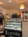 Ресторан вызвал недоумение. Искала место, где красиво и вкусно поужинать перед посещением Мариинского театра, нашла Entree в путеводителе, потом он попался мне в инста и я подумала, что судьба 😁 О, как я ошиблась, интерьер в заведении морально устарел, он как будто из 90-ых, на обивке стула дыра, дешевенькие бумажные салфетки на столах…надеялась, что еда будет восхитительной, иначе откуда хвалебные отзывы? Но кухня так себе, паста с креветками очень посредственная, томатный соус кислый, не доведено до вкуса…луковый суп - нормально, обычно, можно есть… мы не такого ожидаем от похода в ресторан, правда? Невольно слышала, как официант презентовала блюда людям за соседним столиком, отзываясь о некоторых позициях пренебрежительно и негативно. Прекрасное географическое расположение, но над кухней нужно поработать. Обновить интерьер. Поработать над меню, пусть оно будет менее обширным, но вкусным! Десерты неплохие, но это не лучшие эклеры в Питере, как написано в некоторых путеводителях) К сожалению, не поняла в чем феномен этого заведения, откуда хвалебные отзывы. Возможно ресторан когда-то действительно был достойным, но сейчас - нет…возвращаться нет желания, даже за эклерами. Я очень люблю фотографировать, но тут вообще не возникло желания запечатлеть что либо. Осталось только фото с прилавком с десертами, фоткала, чтобы моей спутнице показать, ибо десертного меню нет, подходишь и сам выбираешь, что для меня тоже странно 😁 В общем, звездочку только за эклер. Все остальное кричаще требует перемен.