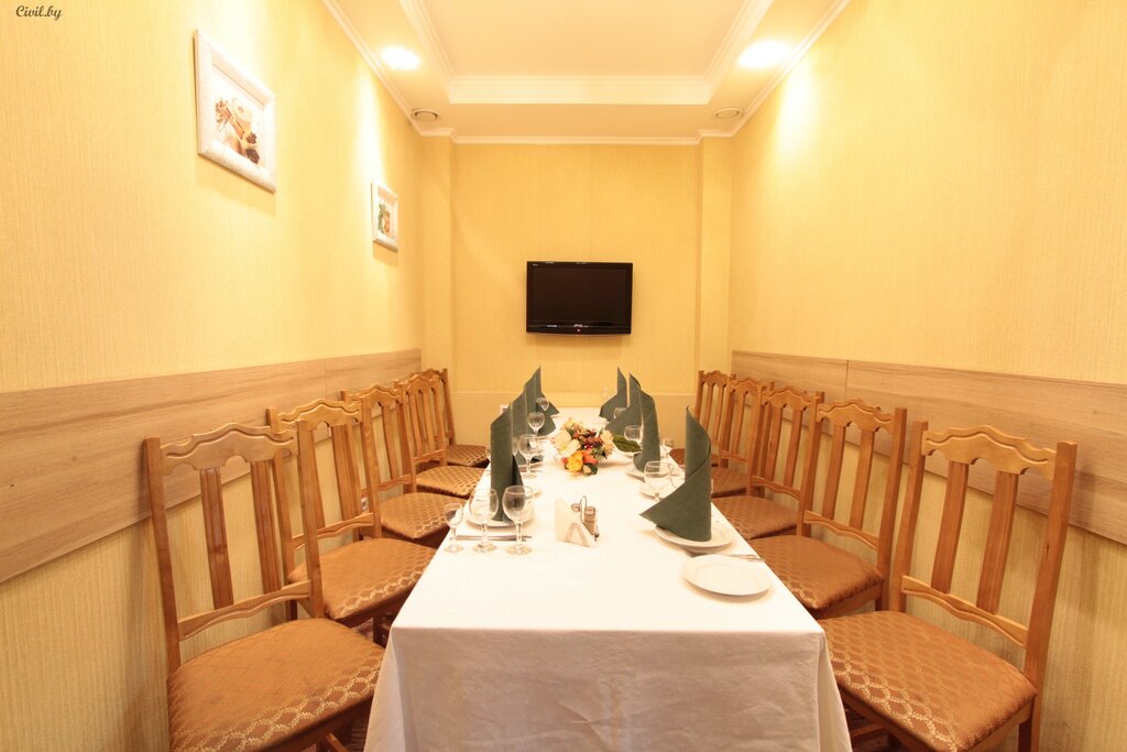 Excellent cafe in the hotel building. It's not a big choice, but it's made with love. There is a choice of national dishes, so you don't have to wait for the beginning of acquaintance with the culture and traditions of Belarus when you check in. There is a choice of alcoholic beverages The hall is clean and spacious. The form of payment is cash and non-cash
