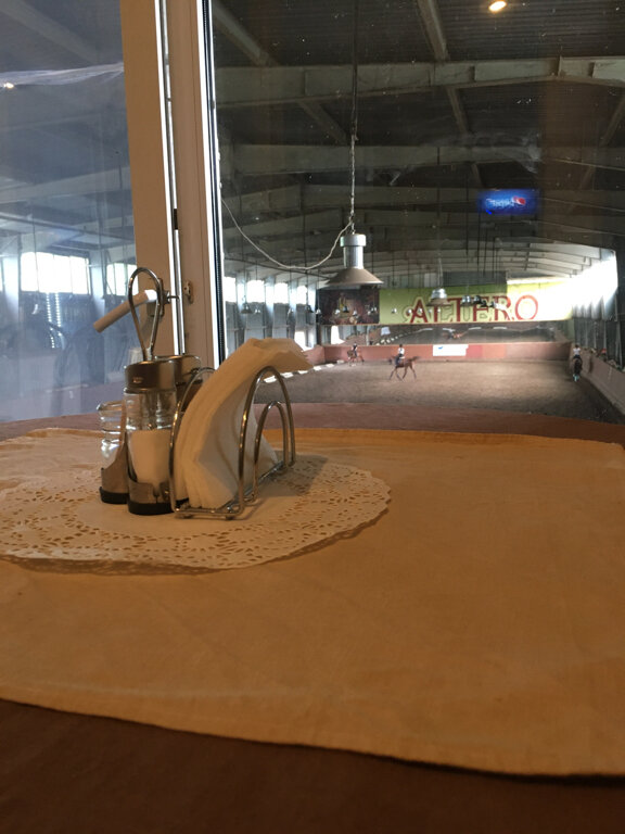Во-первых прекрасное место. Где еще в центре Москвы, вы сможете сидеть в кафе и лицезреть за панорамным стеклом-стеной конный манеж с красивыми лошадками. Тренировки. Соревнования. Успокаивает и расслабляет. Камерная атмосфера , радушный хозяин, вкусная еда и прекрасный кофе! Кафе на территории конного клуба. Прогуливаясь рядом , нашагав ножками или наездив колёсами , очень хорошо зайти перекусить и отдохнуть)))