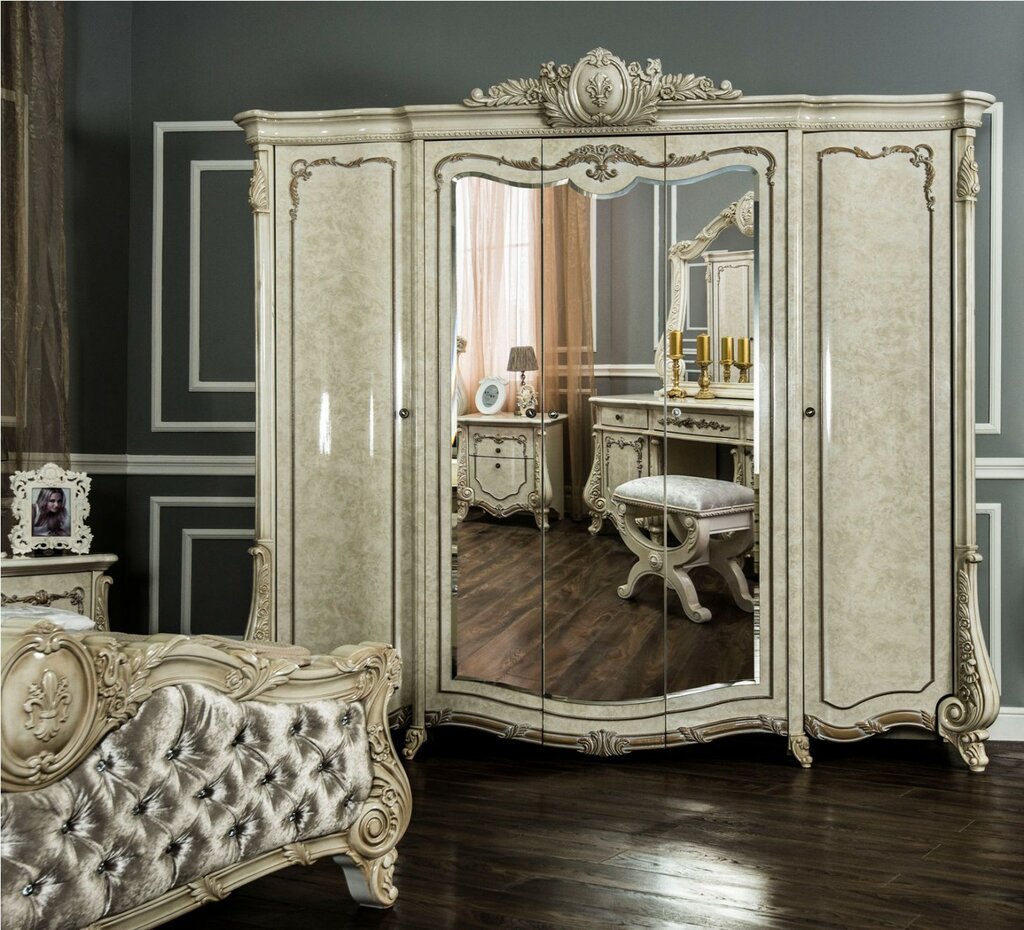 Спальный гарнитур «Энрике» 4-х ств. цвет «крем» глянец