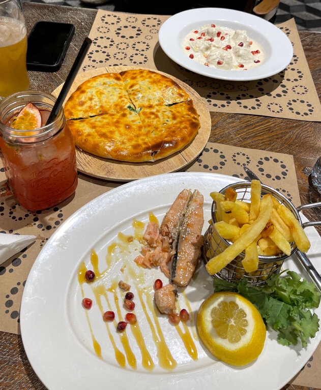 Место очень красивое, много людей. Кухня оставляет желать лучшего. Тар-тар из тунца невозможно испортить, подумали бы вы. Нет вкуса блюда совсем. Салат Цезарь с цыплёнком никакой. В салате главное соус, а он далеко не Цезарь. И мидии в белом вине. По ощущениям замороженные мидии бросили в воду и просто выловили на тарелку. Всё! Перемороженные невкусные мидии. Стейк Мачете: когда вкусно, тогда вкусно👍Чай " В непогоду " прекрасный. По итогу 2900 руб. невкусно.