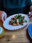 Сыр в панировке очень вкусный! Голубцы из креветок и краба оказались костлявыми 😁 в буквальном смысле)) На веранде музыки нет, поэтому ужин под шум проезжающих машин. В общем, вся движуха в зале, на веранде будто за бортом праздника((