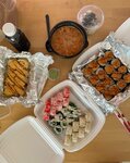 Роллы свежие, очень вкусные, начинка соответствует описанию, ешь не один рис, запеченные с креветкой это огонь. Том ям порция шикарная, можно смело брать девочкам на двоих, креветок штуки 4 было и они большие, а не "салатного" размера, по вкусу в меру и сливочно и томатно и не кисло. Доставка по времени где то в течение часа.