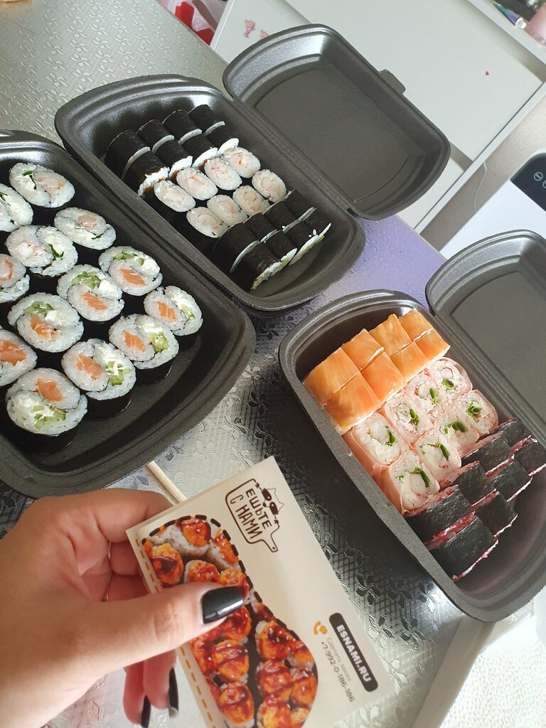 Самые лучшие роллы!!! Самая лучшая доставка среди городов!!! Мне приходится приезжать издалека, чтобы насладиться этой радостью.Чувствуется с какой любовью подходят к приготовлению этого превосходства! Нигде такого больше нет. Человек, который создал это место-гений и явно хороший человек. Все для людей! *Беру 10000 раз еду в: «Ешьте с нами» и отзыв решила оставить только сейчас