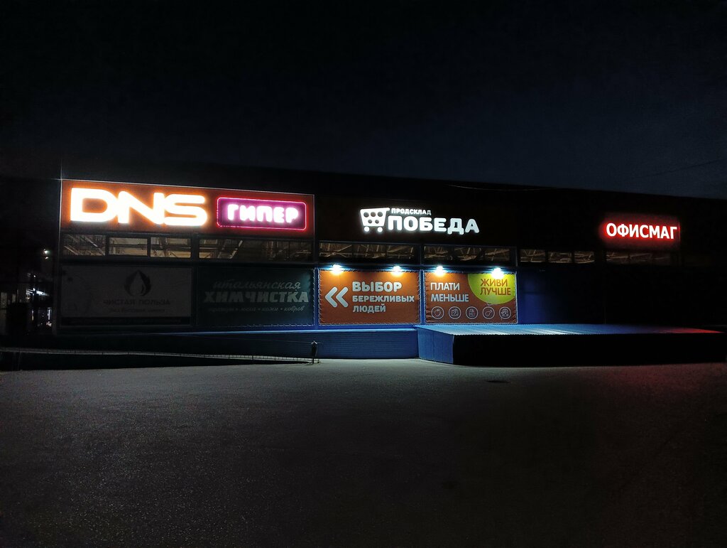 Положительное осталось только наличие большой парковки. Правда , там облюбовали место учебные комбинаты - в перерывах ставят свои машины как попало. Из отделов- большой ДНС, Глория джинс и склад Победа. Победа- это нечто. Иногда посещаю, но цены те же, что в Пятерочке. Есть банкомат, отдел изготовления ключей( чаще закрыт).