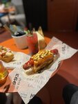 Очередное прекрасное заведение Северной столицы. Ребята готовят очень-очень вкусные хот-доги. Несмотря на нестандартный вид хот-догов, их нужно обязательно попробовать хотя бы раз. Прекрасная булочка бриошь, вкуснейшая крафтовая сосиска, а также удачно подобранные топпинги. В качестве дополнения к хот-догу от себя порекомендую картошку 4 сыра. Прекрасное дополнение под пенное ("Светлое будущее" обязательно на пробу). В плане лимонадов всё на достойном уровне, но не прям "вау". Попробовали несколько позиций и все хот-доги были очень вкусными. Однако за все хорошее, как говорится, надо платить...и цены здесь довольно высокие: в среднем хот-дог стоит 450-500 рублей. С другой же стороны, эти деньги не будут потрачены зря с вашей стороны. Также отмечу приветливый персонал, ребята расскажут и покажут что и как, если имеются вопросы по меню. Не очень удобный способ принятия заказа - только на кассе...но с учётом того, что само кафе компактное, особого дискомфорта в этом плане нет. Время ожидания заказа составило где-то минут 15.