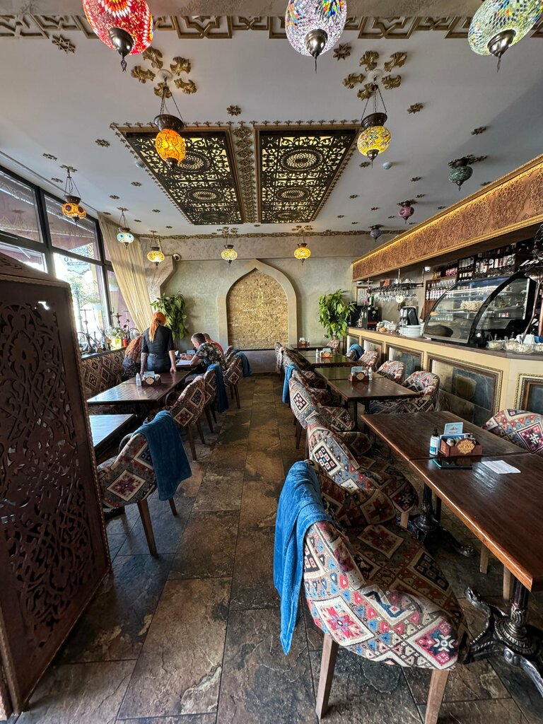 Expensive, but very tasty) We were in Baranovichi one day, we stopped for dinner before the train. The place is small, but popular, one table was just found) The waitress is the sweetest) We ordered a pot of tea right away. They put it on a stand with a candle underneath, kept it warm all through dinner. The dishes are themed, in a sugar bowl, except cubes, candied fruits - it became very warm and cozy right away. We ordered khinkali with beef - the broth is the most fragrant inside) We also took lamb kebab - I didn't think that this meat could be so delicious! Potatoes, grilled vegetables and sauce go with it. We ate too much) We rested and went home happy.
