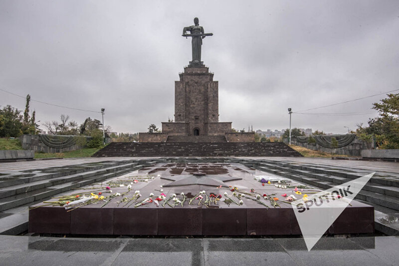Eternal flame and Mother Armenia sculpture in memory of the soldiers who died in the Great Patriotic War