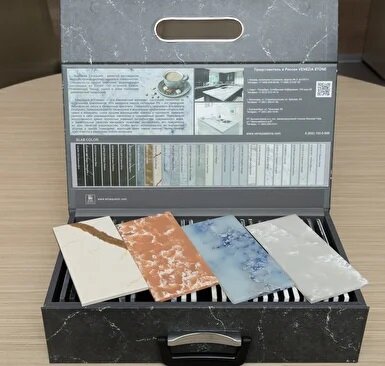 Достаточно интересная коллекция кварцевого агломерата. Особенно интересны светопропускающие модели.