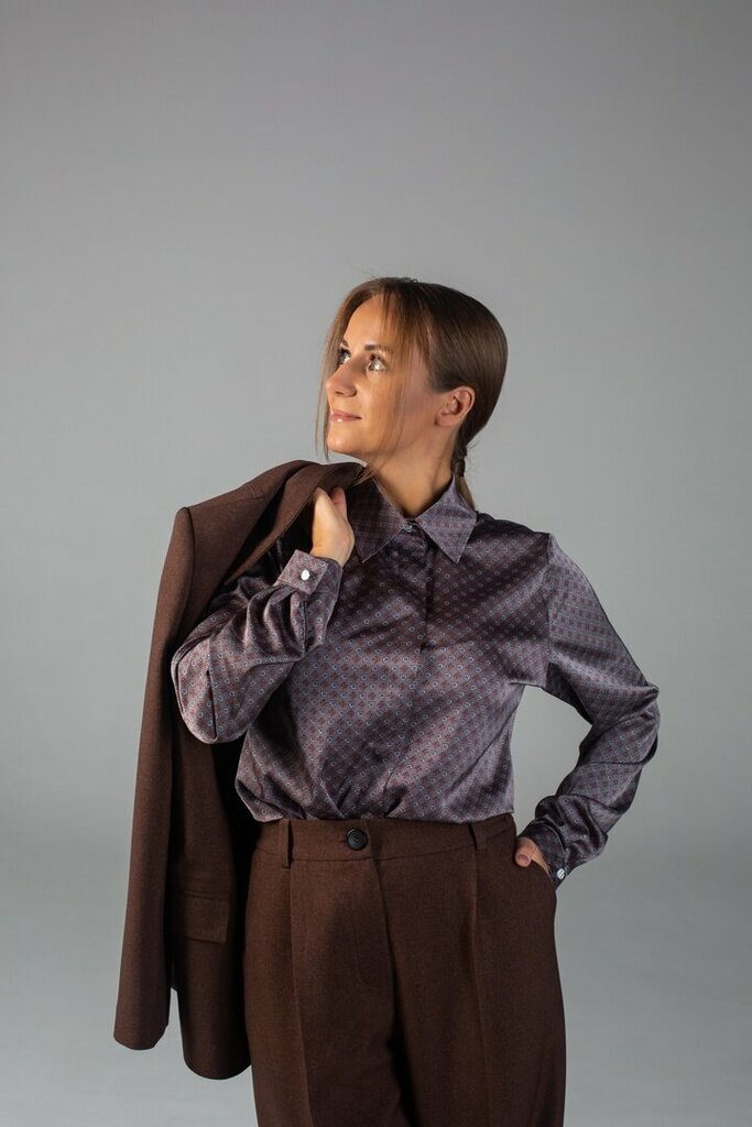 Цвет: бело-черный принт зебра. Ткань: шелк. Состав: 30% вискоза, 70% пэ. Детали: блуза прямого силуэта, по полочке супатная застежка, плечо спущенное, рубашечный воротник, рукав длинный с манжетом.