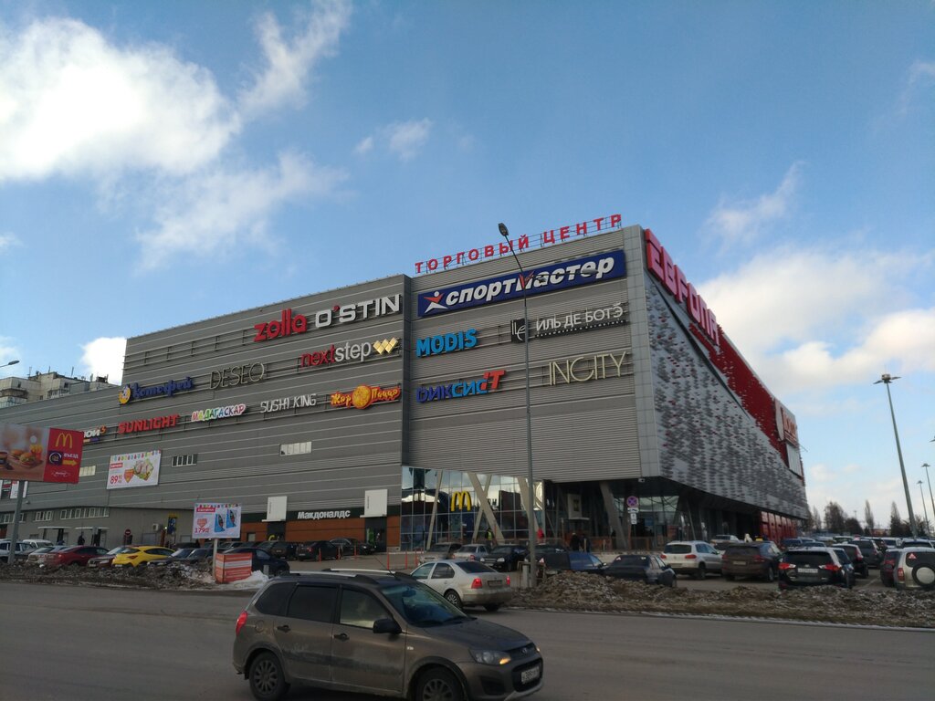Удобное расположение, большая парковка. Внутри всё чистенько и красиво. Есть всё необходимое: магазины, кафе, развлечения для детей. Персонал вежливый, навигация понятная. Можно провести целый день — и за покупками сходить, и отдохнуть. Рекомендую!