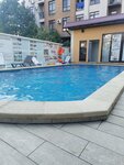 Отдыхали в отеле, в течении недели, в июне 2025г. Впечатление от проживания позитивное. Понравилось, что территорию, хоть и не большую, содержат в чистоте, тротуарную плитку моют, как пол, шваброй. Газоны и клумбы украшены цветущими растениями и декоративными фигурками. Тёплый, с прозрачной водой, бассейн, который регулярно чистят. На ресепшене есть игровая комната для маленьких гостей. Сам отель, расположен на оживлённой улице, но когда попадаешь на территорию, то звук как будто приглушается, становится тихо. От отеля до моря буквально пять минут прогулочным шагом. Мы ходили в самый конец пляжа "Чкаловский", там пологий заход в море и меньше народа. На самой улице, рядом с отелем, есть всё, что может понадобится. Аптеки, продуктовые магазины, сувениры, кафе, рестораны. Про номер в отеле могу сказать, что он напоминал небольшую квартиру -студию. Мы жили в апартаментах с отдельным входом. Была своя кухня, стол в виде барной стойки. Достаточно просторный, с современным дизайном, сан. узел (шампуни, мыло, гель для душа, зубная щётка - всё присутствовало, а так же халаты, тапочки, полотенца для душа и для бассейна). Очень удобная кровать с в меру жёстким матрассом, каждому по 2 подушки, что порадовало. Уборка в номере каждый день, полотенца меняли через каждые 2 дня. Спасибо всему персоналу отеля за заботу! P. S. При заезде в отель надо заплатить "депозит" в сумме 5000.00 рублей, который возвращается при выезде.