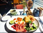 Были недавно на завтраке, ооочень вкусно! Брали завтрак с рыбой, порция огромная и на двоих вполне хватает)) официант сразу предложил кофе, который также был довольно вкусным. Заправка в салате очень классная, добавляет свежести. Самое забавное это крендельки, которые приносят в самом начале как комплимент) на десерт брала йогурт с ягодами, в сам йогурт добавлены специи, которые придают ему необычный вкус! Обязательно придем еще♥️